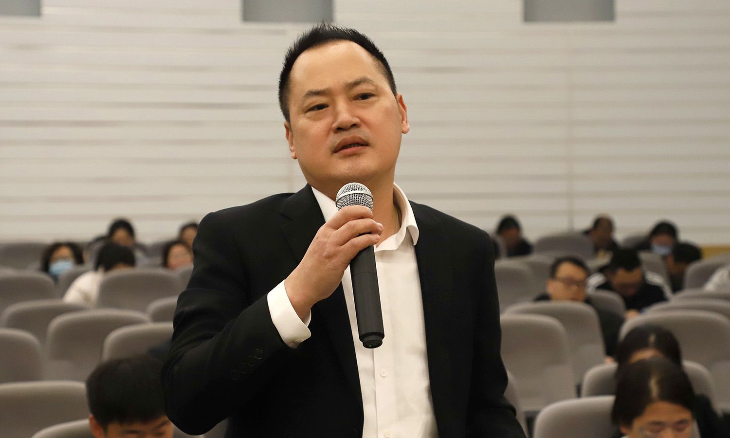 4月6日,校长颜晓红、校党委副书记李洪波走进校园热点面对面之“高等教育现代化的新实践”活动现场,与老师们面对面交流,围绕如何夯实大学的归依,探索行业特色地方高校的高等教育现代化特色发展之路,在中国科教体系中传递leyu乐鱼(中国)模式、leyu乐鱼(中国)方案进行现场释疑解惑。校党委常委、宣传部部长杨道建主持活动。