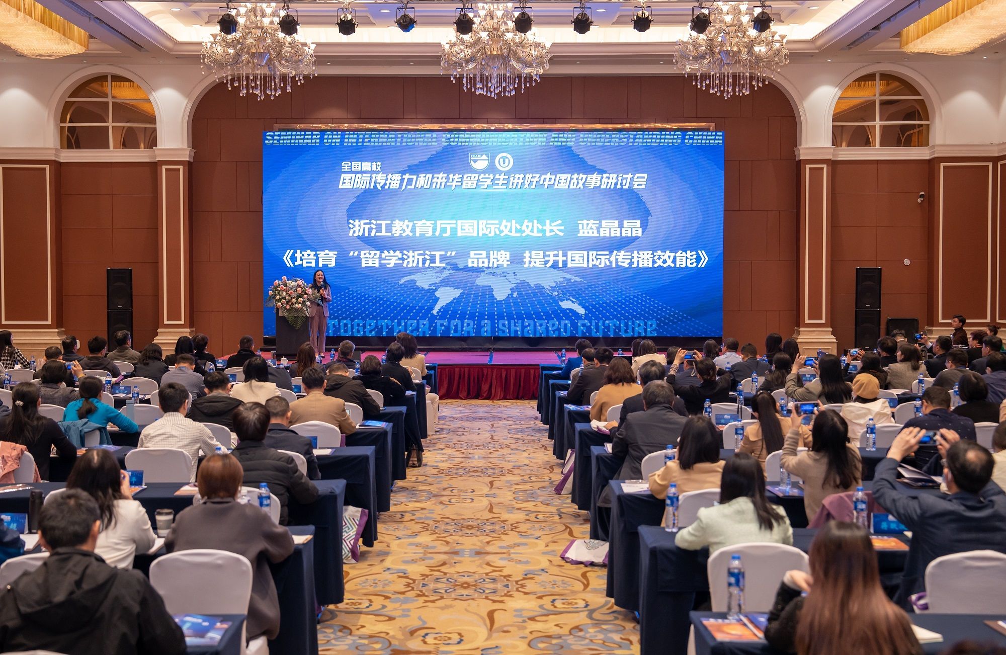 教育部国际合作与交流司副司长陈大立、中国教育国际交流协会秘书处正司级副秘书长宗瓦、江苏省教育厅对外交流与合作处处长施蕴玉、浙江省教育厅国际处处长蓝晶晶、广东省教育厅国际处副处长王静娴、江苏省高等教育学会外国留学生教育管理研究委员会副会长俞晓南、乐鱼官方体育网站校长颜晓红、宁波诺丁汉大学党委副书记董红波等出席会议。来自北京、上海、天津、浙江、安徽、福建、甘肃等24个省、直辖市的来华留学生教育管理部门负责人,以及学校有关单位负责人、教师代表等250余人参会。开幕式由副校长赵玉涛主持。