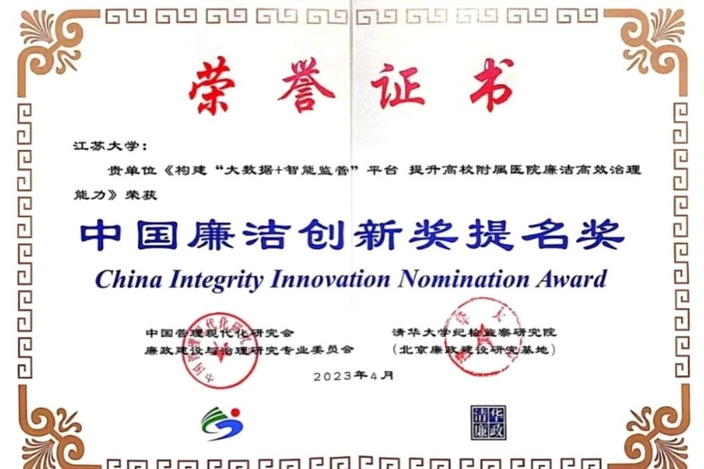 4月9日,第三届中国廉洁创新奖颁奖典礼暨中国廉洁创新高端论坛在清华大学举行。乐鱼官方体育网站纪委组织实施、附属医院纪委牵头申报的《构建“大数据+智能监管”平台 提升高校附属医院廉洁高效治理能力》荣获中国廉洁创新奖提名奖。作为江苏省高校唯一获奖单位,校纪委委员、附属医院纪委书记吕霞应邀参加颁奖典礼。