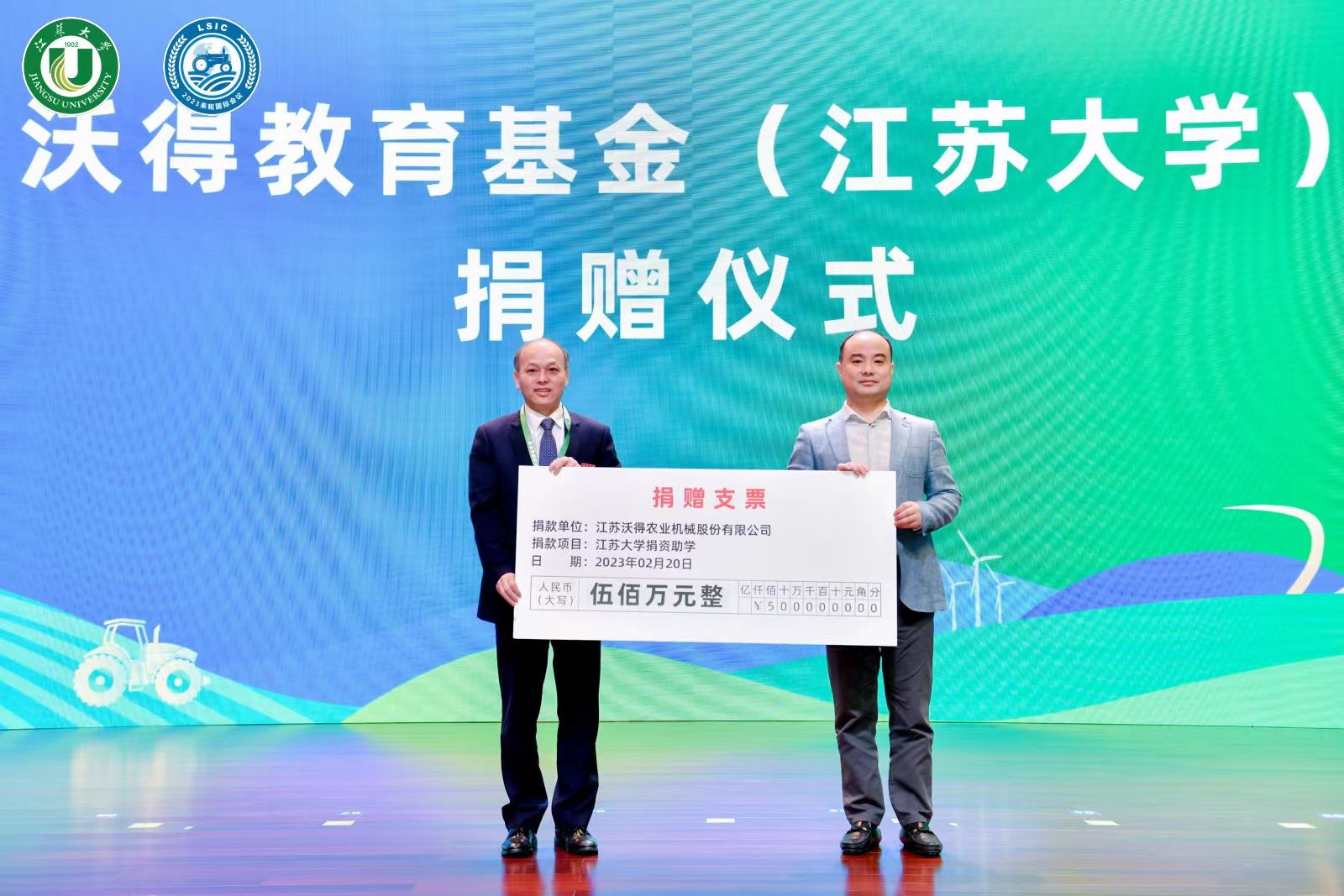 为了支持乐鱼官方体育网站农机人才培养和学科发展,为农业强国建设提供更大助力,江苏沃得农业机械股份有限公司决定在乐鱼官方体育网站设立500万元“沃得教育基金”。