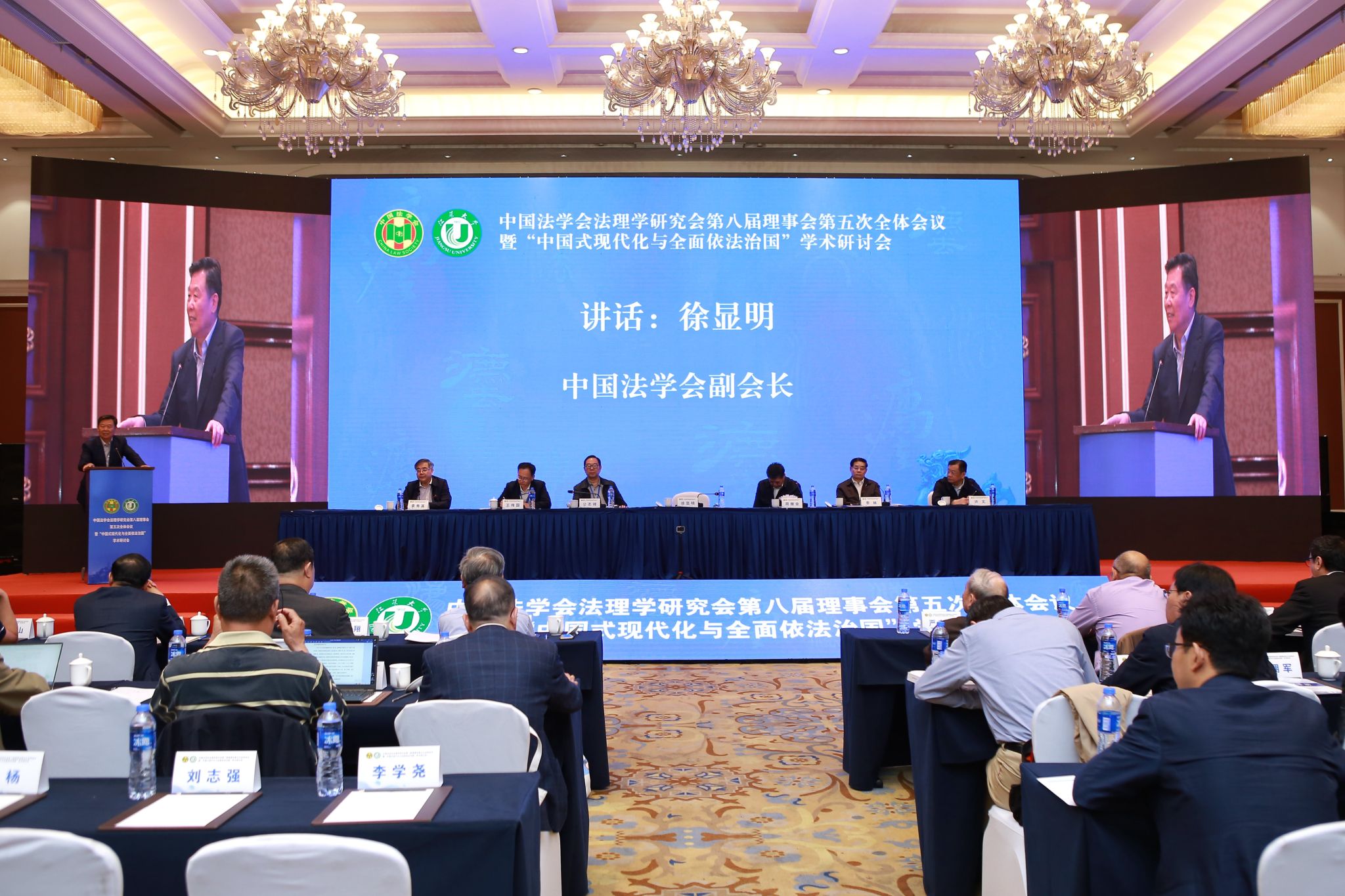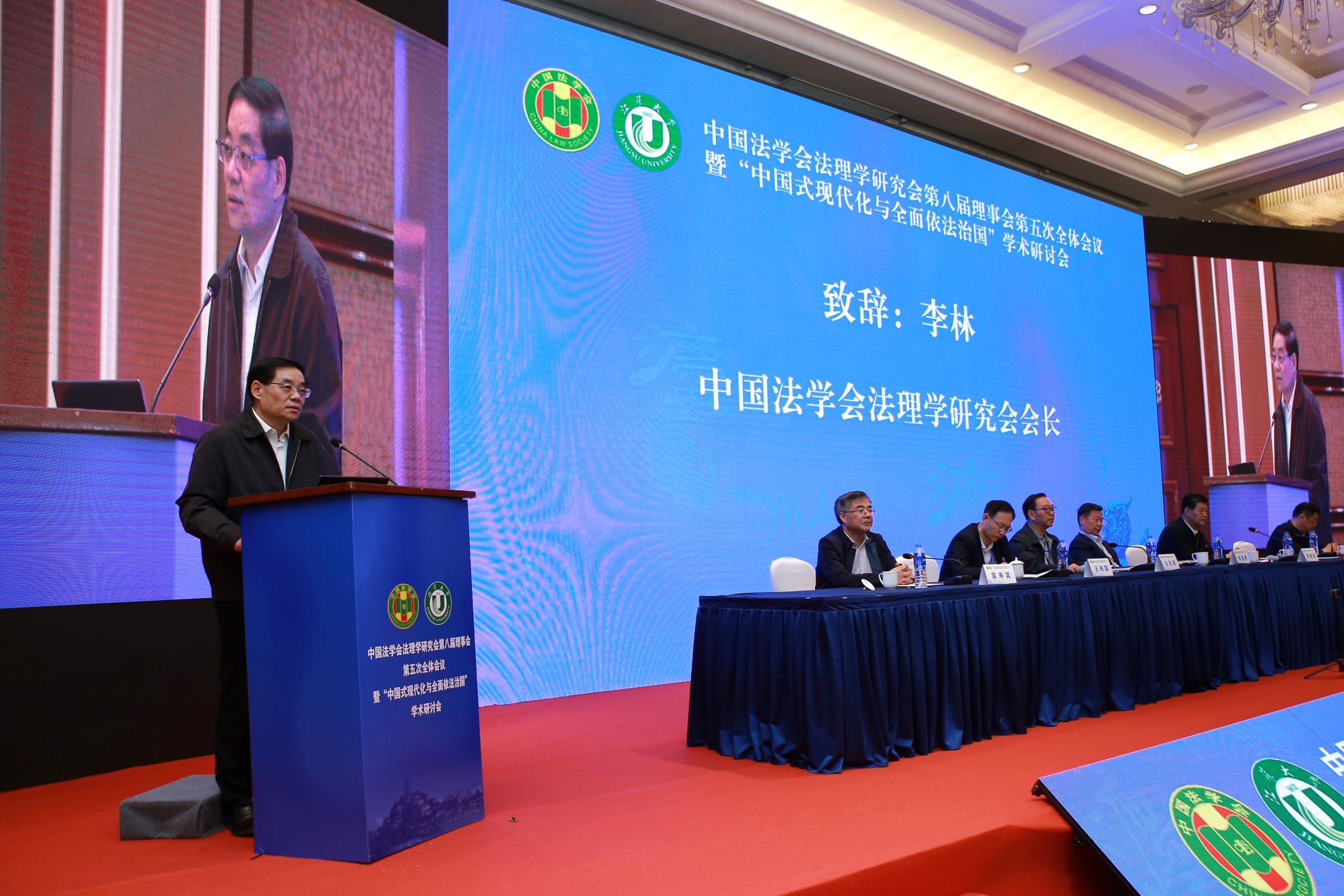 中国法学会副会长、中国法理学研究会名誉会长徐显明,江苏省法学会会长周继业,中国法学会法理学研究会会长、中国社会科学院学部委员李林,中国法学会法理学研究会副会长、南京师范大学中国法治现代化研究院院长公丕祥,中国法学会研究部二级巡视员王伟国,镇江市委常委、市委政法委书记、市法学会会长许文,乐鱼官方体育网站党委书记袁寿其出席会议。开幕式由公丕祥主持。