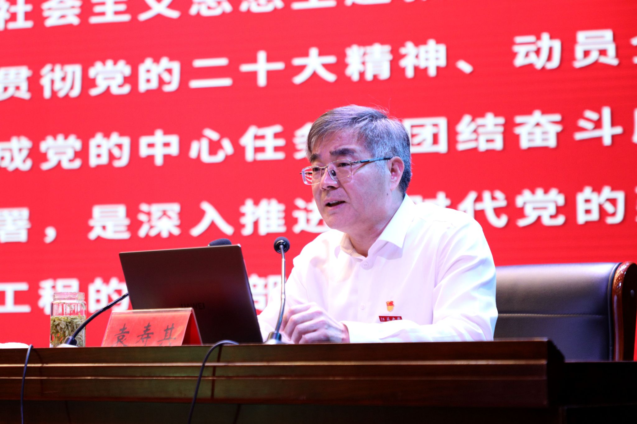 袁寿其结合个人理论学习的收获体会和调查研究的阶段性成果感悟,从“突出'三带三入’,理论学习得到进一步强化;聚焦问题和难点,调查研究扎实有效深入开展;全面落实习近平总书记对学校重要批示精神,切实推动学校事业更高质量发展”三个方面上了一堂精彩生动的专题党课。