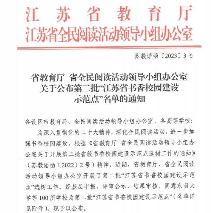 日前,江苏省教育厅公布了第二批“江苏省书香校园建设示范点”名单,乐鱼官方体育网站成功入选。