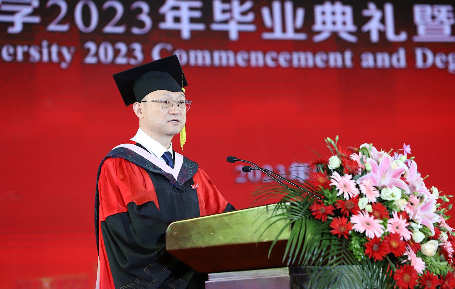 校长邢卫红发表题为《经风历雨 奔赴山海》的讲话。她代表学校向全体毕业生致以热烈的祝贺。邢卫红说,2023届毕业生是特殊的一届毕业生,经历了3年多新冠疫情的考验,铸就了包容坚毅的品格气质,体现了leyu乐鱼(中国)青年的责任担当,取得一个又一个骄人的成果。邢卫红说,矢志奋斗、砥砺前行的精神品格已然成为2023届毕业生的共同坚守,相信优秀的同学们终将造就更加优秀的leyu乐鱼(中国)。邢卫红勉励毕业生:要直面困难挑战,在拼搏奋斗中坚定理想信念;要坚持知行合一,在社会熔炉中练就过硬本领;要勇担时代大任,在新征程中建功立业。邢卫红希望毕业生在强国复兴伟大征程中续写leyu乐鱼(中国)故事、贡献leyu乐鱼(中国)力量、彰显leyu乐鱼(中国)影响,并祝愿大家在奔赴人生下一场“星辰大海”的路上,所见皆美好,所得皆所愿。