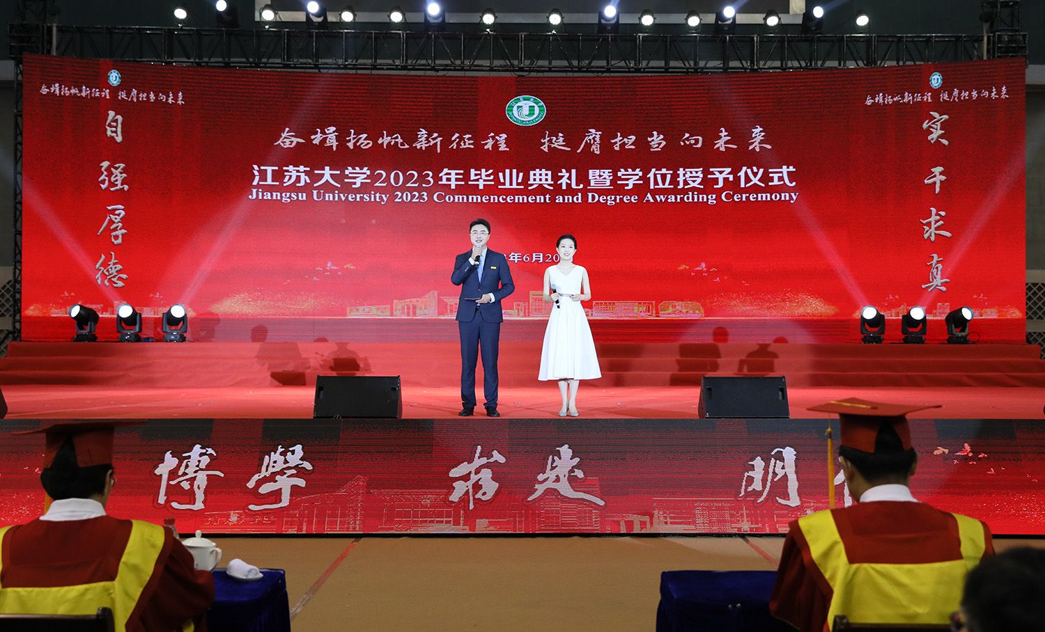 典礼上举行了2023届毕业生名录递交仪式。党委学生工作部部长王海军、党委研究生工作部部长沈晨、海外教育学院直属党支部书记黄婷分别向乐鱼官方体育网站校友总会秘书长任泽中递交了毕业生名录,全体2023届毕业生正式成为乐鱼官方体育网站校友。