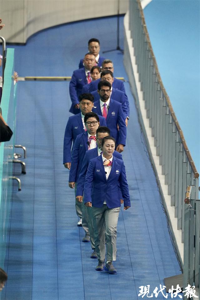 赛场上,胡玉芹是专业的裁判,赛场下,她是轮滑项目裁判圈子里的 " 大姐 ",她组织参加本届亚运会轮滑项目所有江苏裁判合影。" 胡姐站中间。" 拍照时,大家纷纷说。