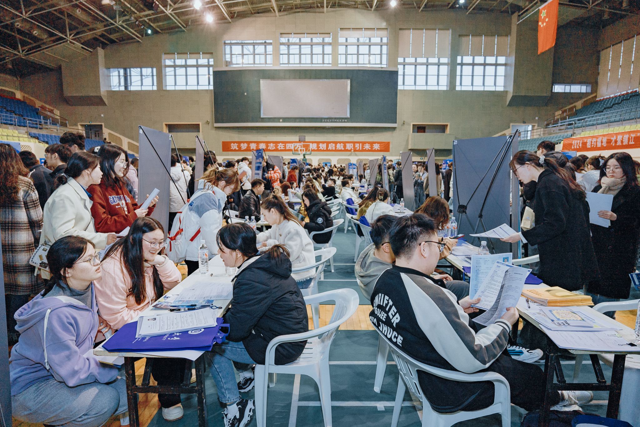 3月13日下午,乐鱼官方体育网站体育馆内人头攒动,应届生们拿着自己的简历,寻找自己心仪的岗位,“我学材料类专业的,想找研发类工作,期待月薪在1万元以上。”乐鱼官方体育网站研三学生范欣竹说,自己老家是东北的,想留在镇江发展。