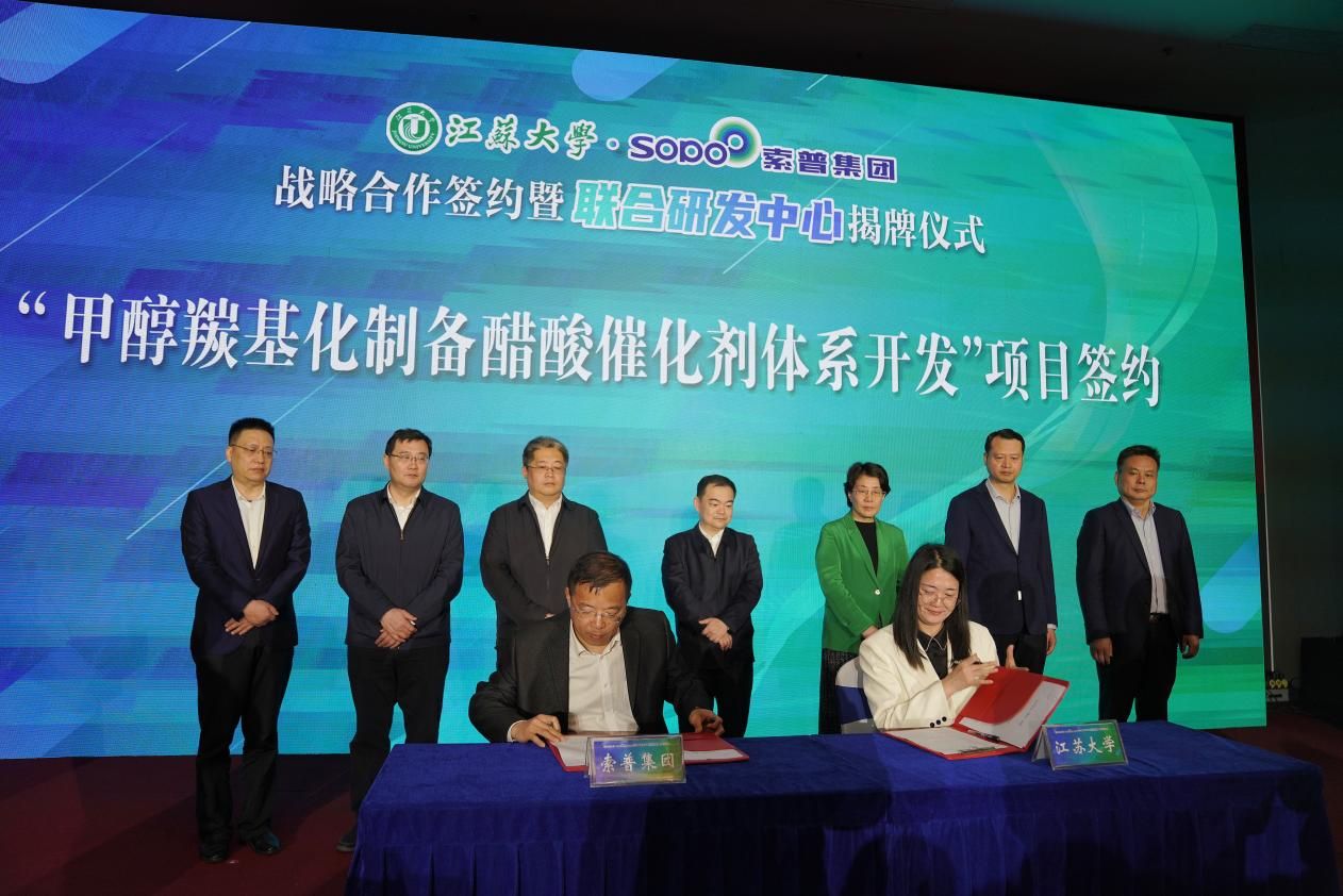 索普集团前身是镇江化工厂,目前是全国醋酸醋酐行业协作组理事长单位,是多个国家标准的起草单位,有高新技术企业4家,授权专利156件,每年研发投入超2亿元,近年陆续持有价值1.8亿元的先进乙烯法醋酸乙烯技术、价值1.1亿元的羰基合成碳酸二甲酯技术。乐鱼官方体育网站作为江苏省重点大学,学校聚焦内涵式高质量发展,奋力创建特色鲜明高水平大学,国内外办学影响持续提升,国际权威世界大学排名位置稳步前移。六十多年来,索普集团与乐鱼官方体育网站相邻相伴,和谐共生,既有深厚的历史渊源,也有广泛的现实需求和广阔的合作空间,在学科、产业链上高度契合,先后合作开展了甲醇羰基化制备醋酸催化剂体系开发等科技创新课题研究,建立了校企产学研中心、高层次人才培养基地等产学研平台,其中索普博士后科研工作站近五年先后招收15名乐鱼官方体育网站博士进站开展课题研究,并取得丰硕成果;乐鱼官方体育网站特聘索普2名产业教授与7名实践导师,近十年累计指导57名学生专业实践工作;双方联合举办高层次经营管理人才研修班,为企业输送工商管理人才20余名。