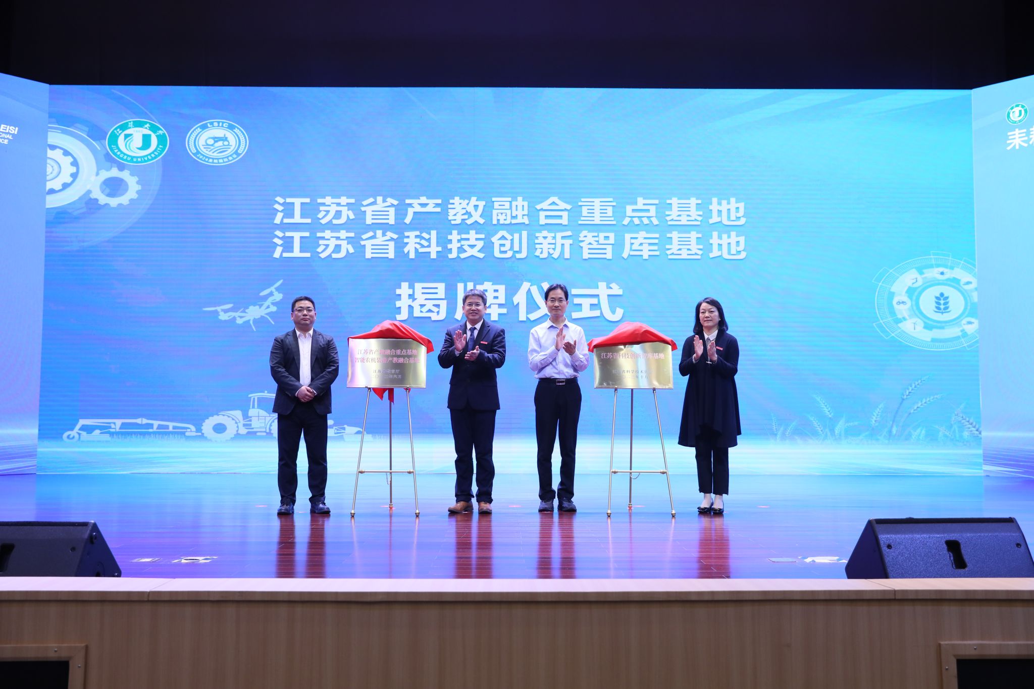 会上,江苏省产教融合重点基地、江苏省科技创新智库基地、校企联合实验室、国家人工智能和农业机器人创新中心举行了授牌仪式。