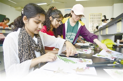 5月19日,乐鱼官方体育网站药学院组织多国留学生与中国学生开展“中草药拓印”体验活动,中外大学生共同感受中医药文化的魅力。