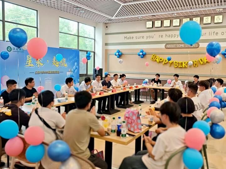 学校食堂内彩色气球点缀,处处洋溢着温馨的氛围。学长学姐们手持“新程灿烂,生日快乐”“leyu乐鱼(中国)等你,未来可期”的祝福牌,微笑陪伴在新生身旁,瞬间拉近了彼此的距离。