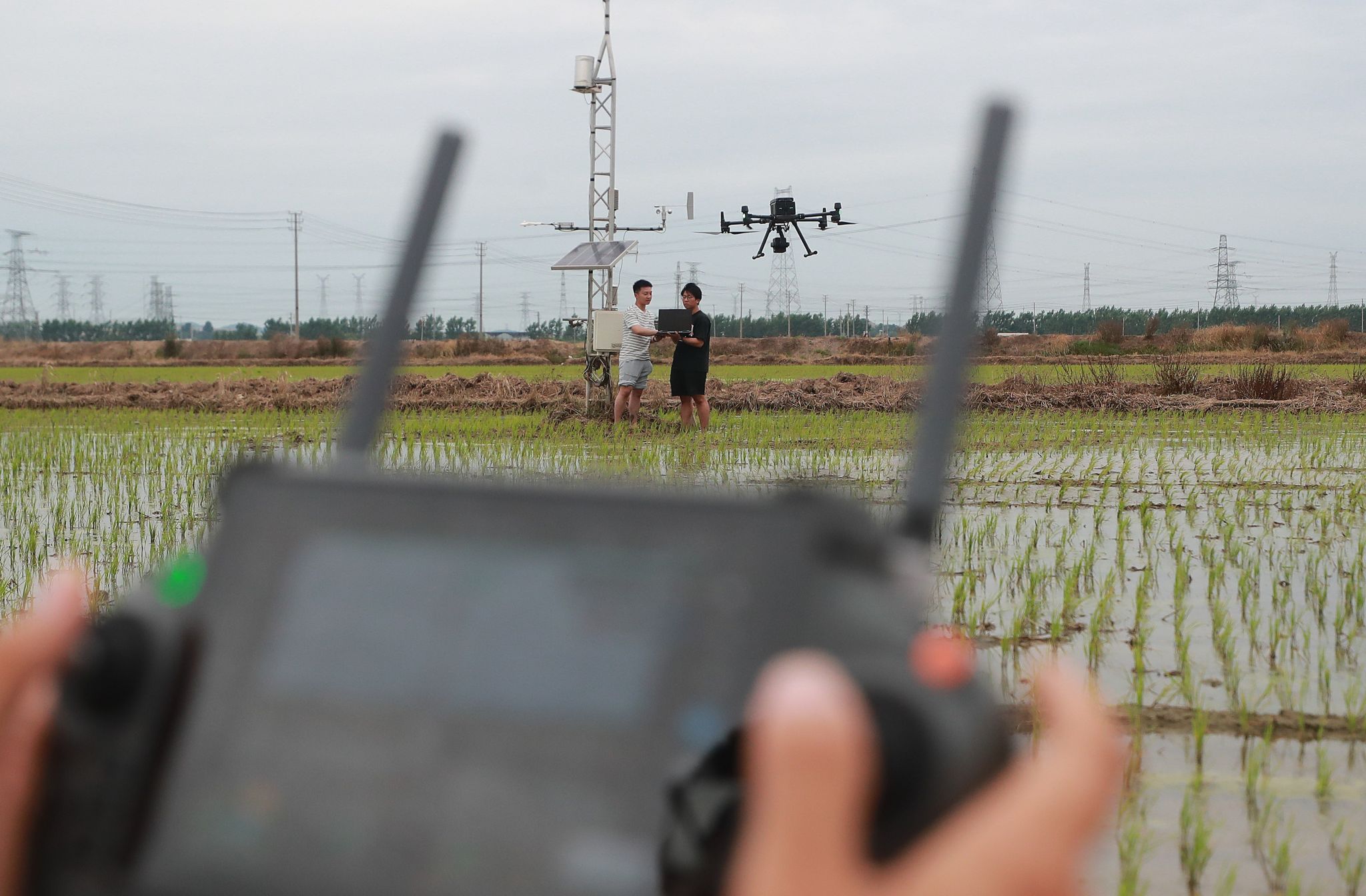 在江苏镇江新区永兴农机机械化专业合作社,乐鱼官方体育网站农业工程学院师生利用低空无人机采集大田信息。