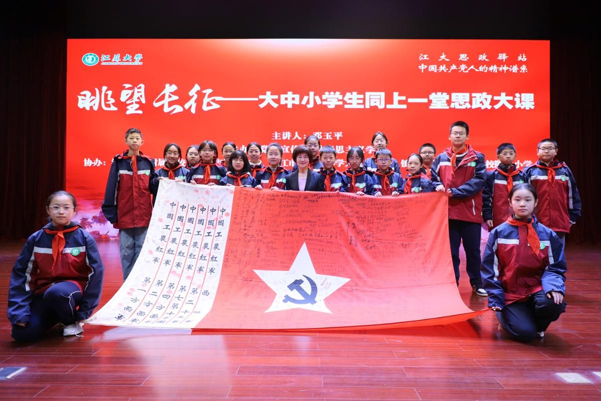 她叫邓玉平,红军后代、历史教师,被誉为“长征精神代言人”。自2004年起,她15次重走长征路,足迹遍布各路红军征途,拜访过300多位老红军,记录下无数鲜为人知的细节。这一次,她受乐鱼官方体育网站之邀,走上“大中小学生同上一堂思政大课”的讲台,与来自乐鱼官方体育网站、乐鱼官方体育网站附属学校、镇江市第一中学、中山路小学大禹山分校、 第一外国语学校附属小学的大中小学生们 共同“眺望长征”。