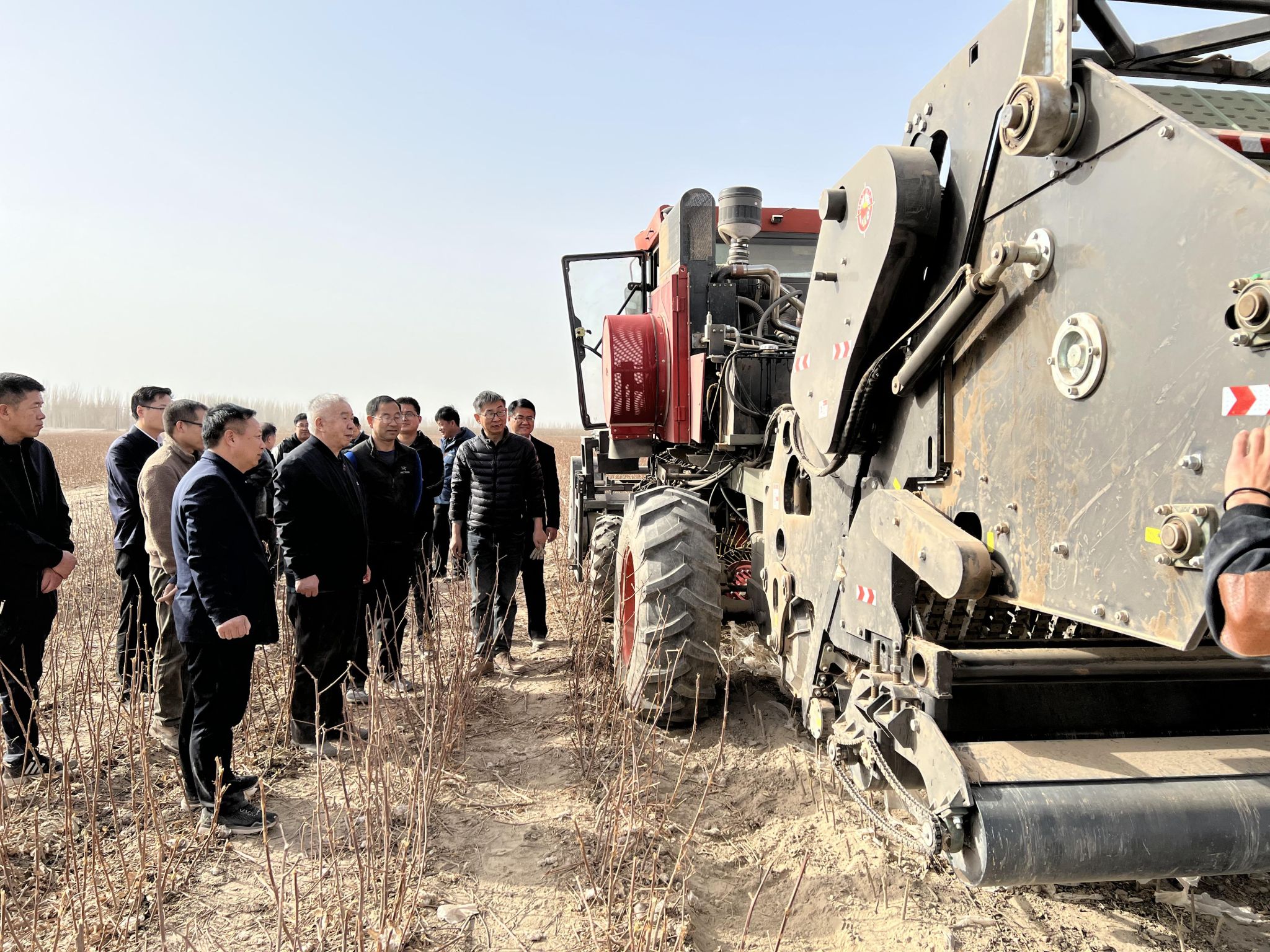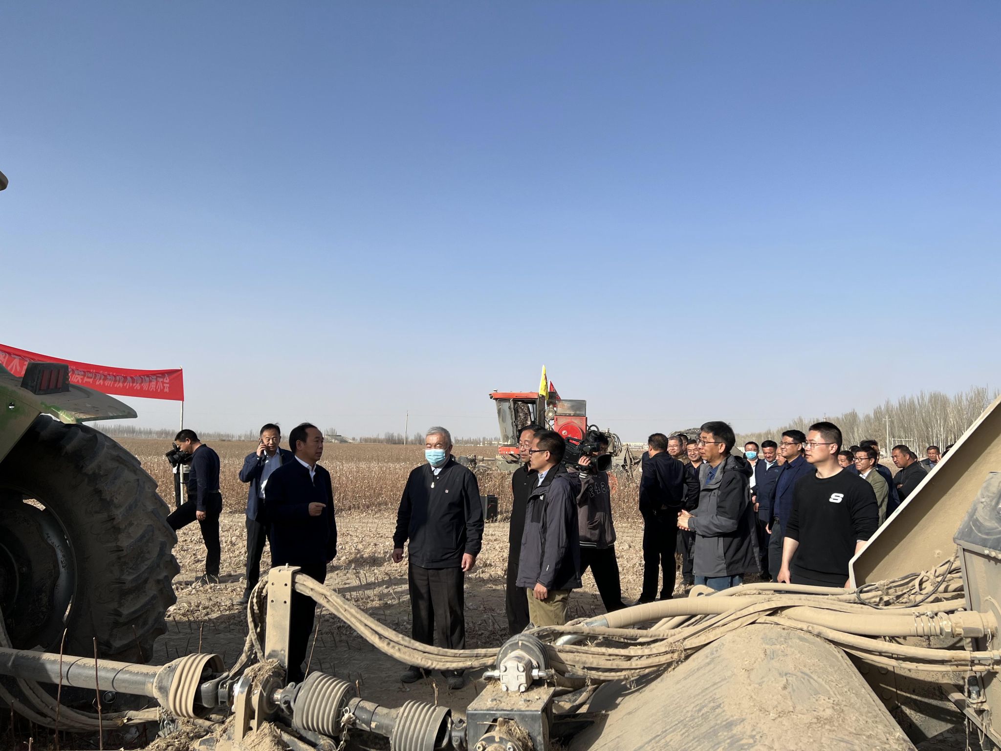 近日,我校高效智能农田残膜回收技术及装备研发陈学庚院士科研团队在新疆生产建设兵团图木舒克市(农三师)开展残膜回收新技术现场验收会暨研讨会,团队研发的两款高效农田残膜回收机现场进行了作业演示和示范推广。