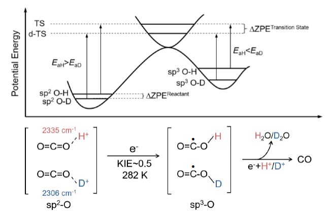 近日,我校化学化工学院绿色化学与化工技术创新团队的最新研究论文“Elucidating protonation pathways in CO2 photoreduction using the kinetic isotope effect” 在自然科学领域顶级期刊Nature Communications (IF:17.69)上在线发表。乐鱼官方体育网站为第一完成单位,博士生尹士康为第一作者,闫研教授和霍鹏伟教授为通讯作者。
