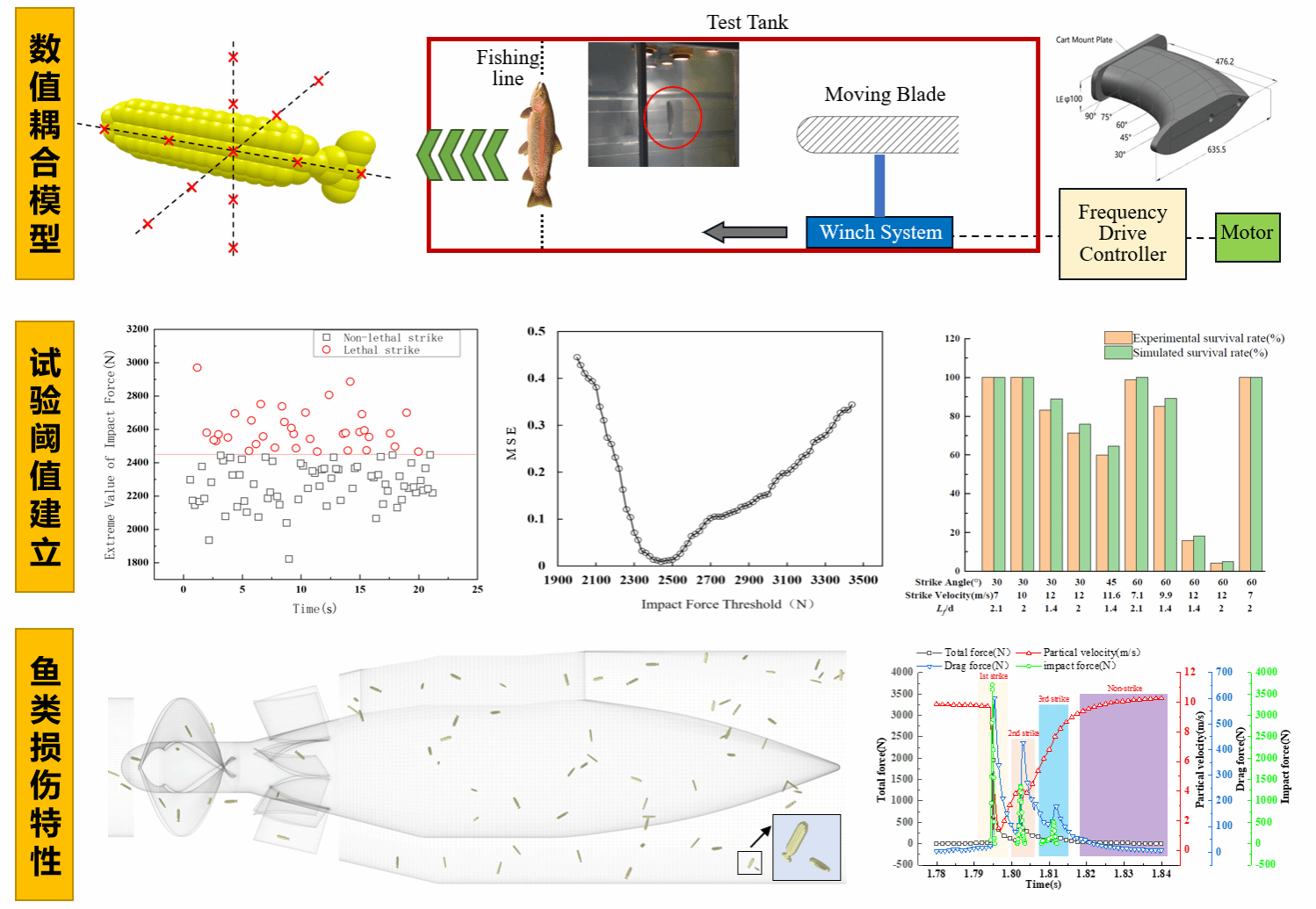 特大型贯流泵机组流道平直,具有效率高、结构紧凑等优点,是大流量调水工程的核心动力“心脏”,被水利部誉为“国之重器”。近年来,随着河湖生态复苏,河道鱼类资源丰富,然而在调水过程中高速旋转的叶轮易造成鱼类损伤或死亡,严重影响生态系统多样性。因此,我校研究团队首次建立了贯流泵复杂流场流动与鱼类运动的耦合模型,揭示了鱼类过泵动态演变与撞击损伤特性;提出了鱼类友好型水力机械设计准则,并在国内首次成功开发了生态友好型贯流泵水力模型,通过了试验验证,综合性能满足工程要求,推荐在南水北调后续工程等重大项目试点应用。